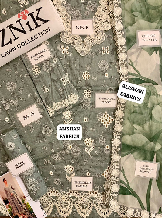 Iznik Wz-102 Luxury Lawn Embroidered Eid Collection 2025