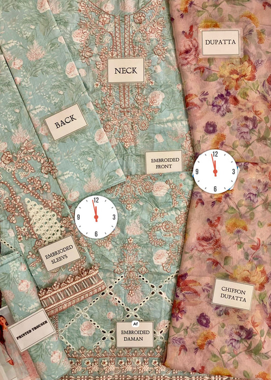 Baroque Premier Pure Lawn Dress With Chiffon Duppata Winter Collection 2024
