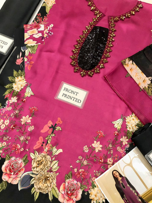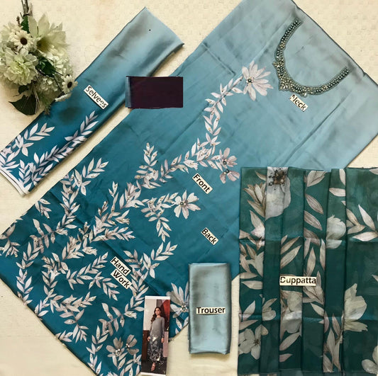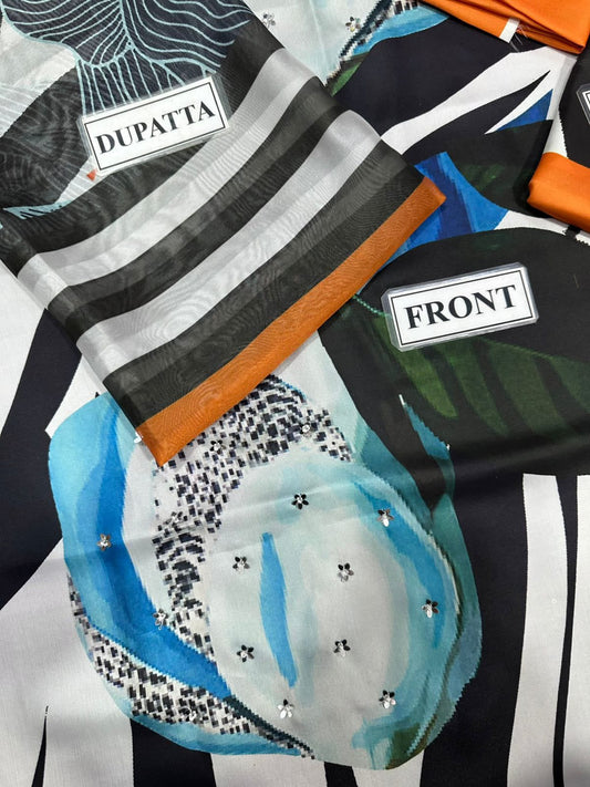 Lulusar Wz-209 Pure Digital Shamoz Silk Stone Work Pakistani Dress 2024
