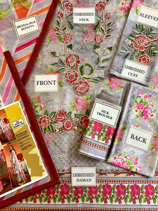 Wearza Wz-1022 Pure Silk Dress Embroidered Pakistani Dress 2024