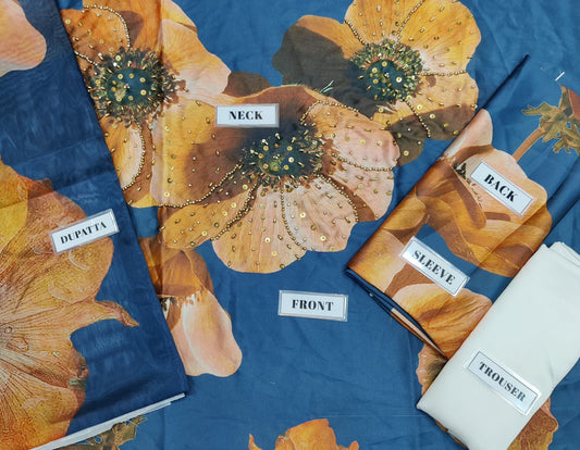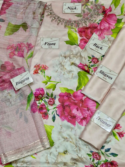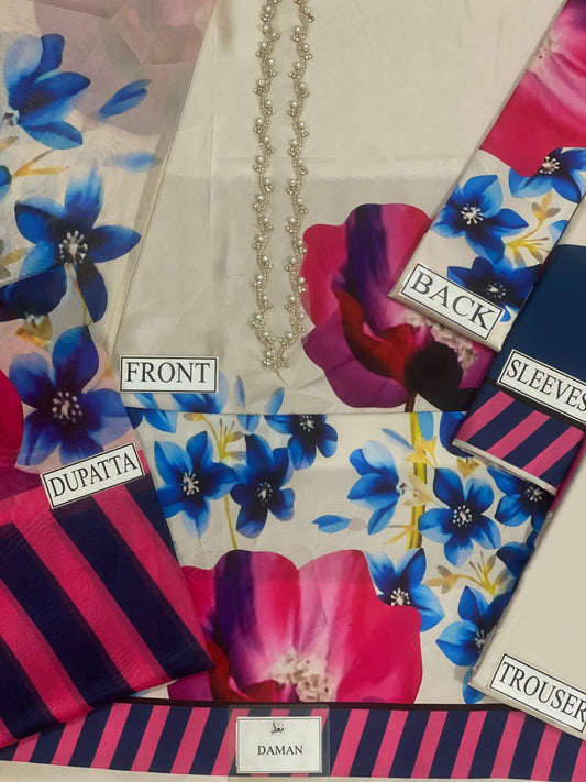 Lalusar Premium Pure Digital Printed Handwork Pakistani Dress 2024