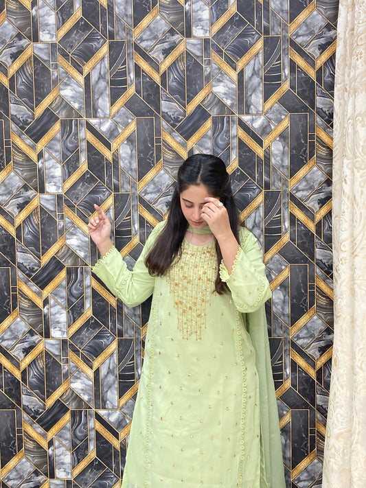 Wearza Luxury 3-Piece Crinkle Chiffon Frock Ready To Wear 2024