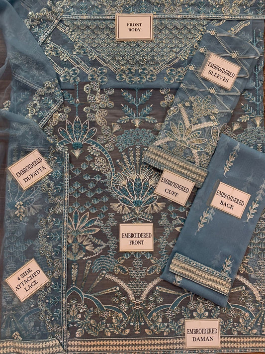 Baroque Luxury Wz-285 Most Hot Blue Chiffon Embroirdered Dress 2025