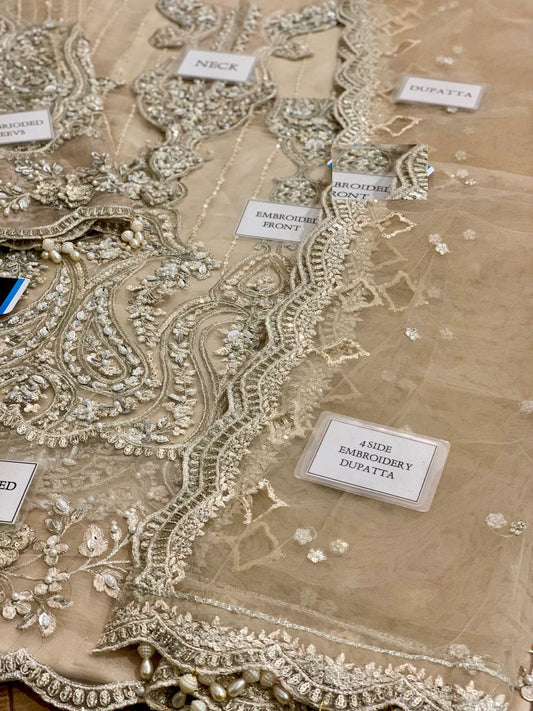 Maria b Heavy Embroidered Skin Formal Soft Net Wedding & Party Wear Dress 2025