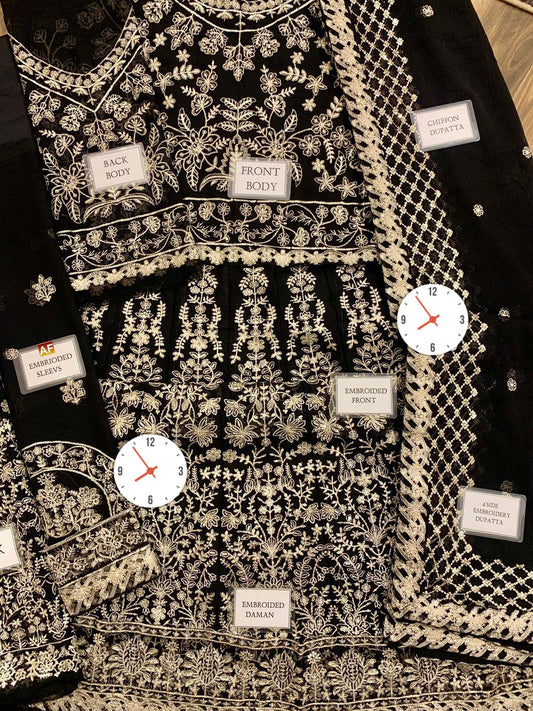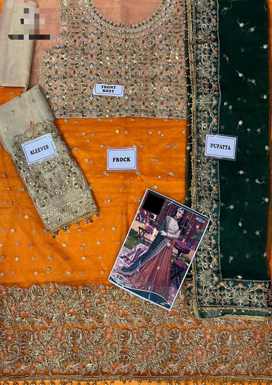 Asim Jofa Semi Pure Chiffon Frock Fully Handwork Wedding Collection 2024