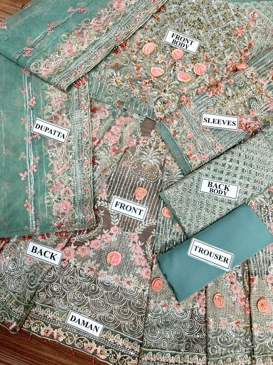 Hira Mani Ruedad E Sahar Bridal Party Wear Wz-1310 100% Premium Soft Net Dress 2024