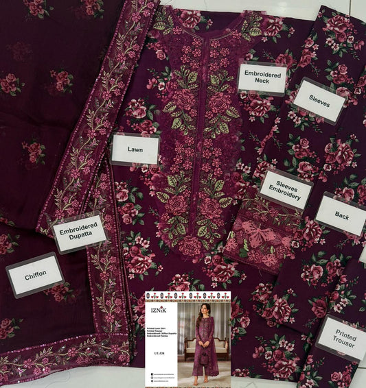 Iznik Ue-537 Premium Pure Lawn With Chiffon Emb Duppata 2026