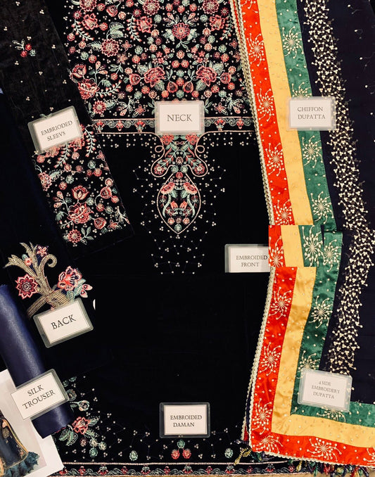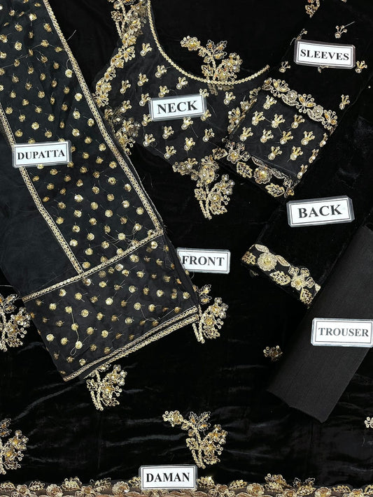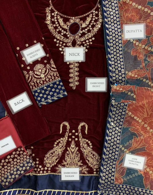 Baroque 100% Velvet Dress With Pure Organza Duppata 2024