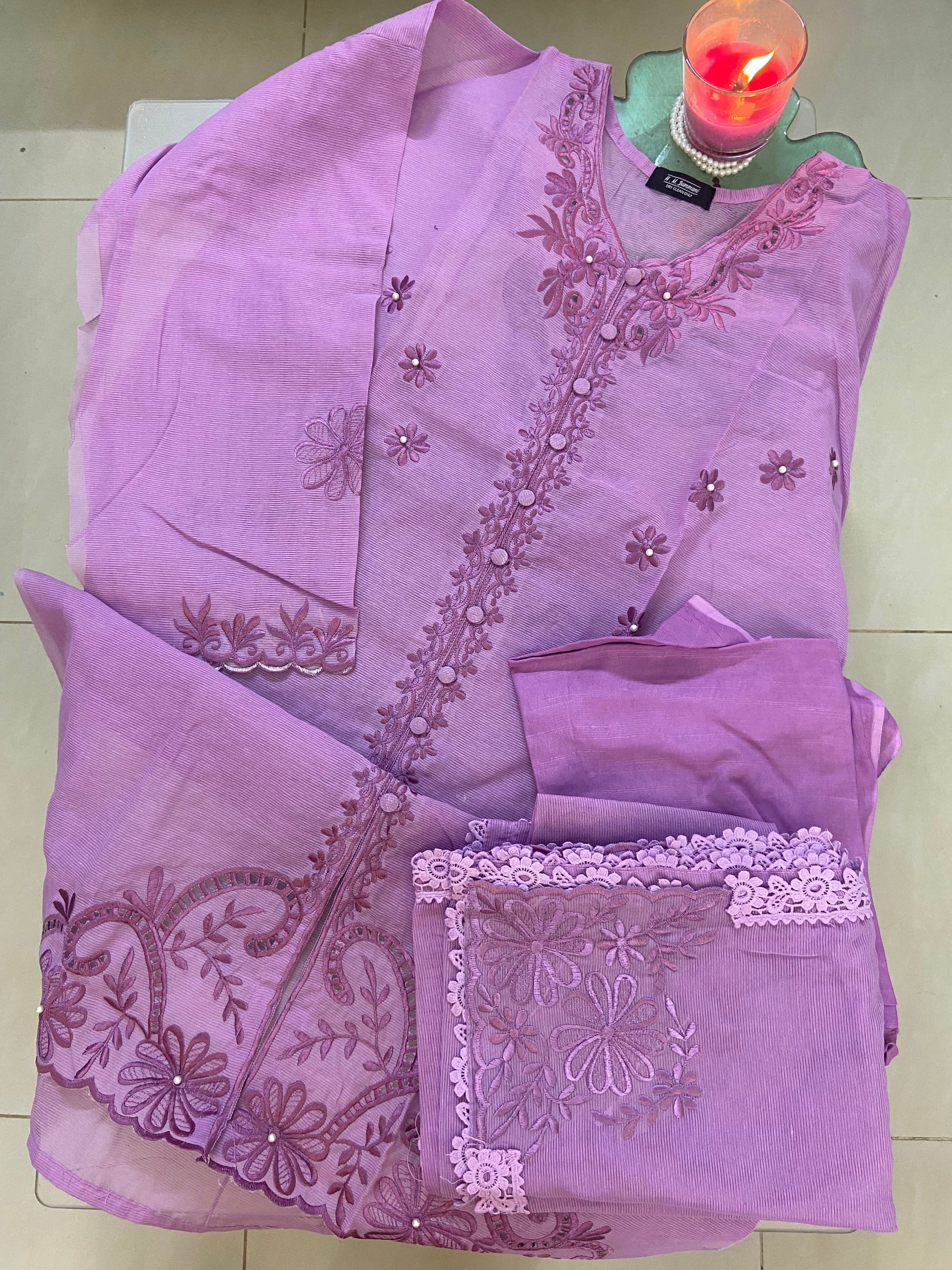 ILAYA Unstitched Khaadi Net Dress With Premium Khaadi Net Duppata 2024