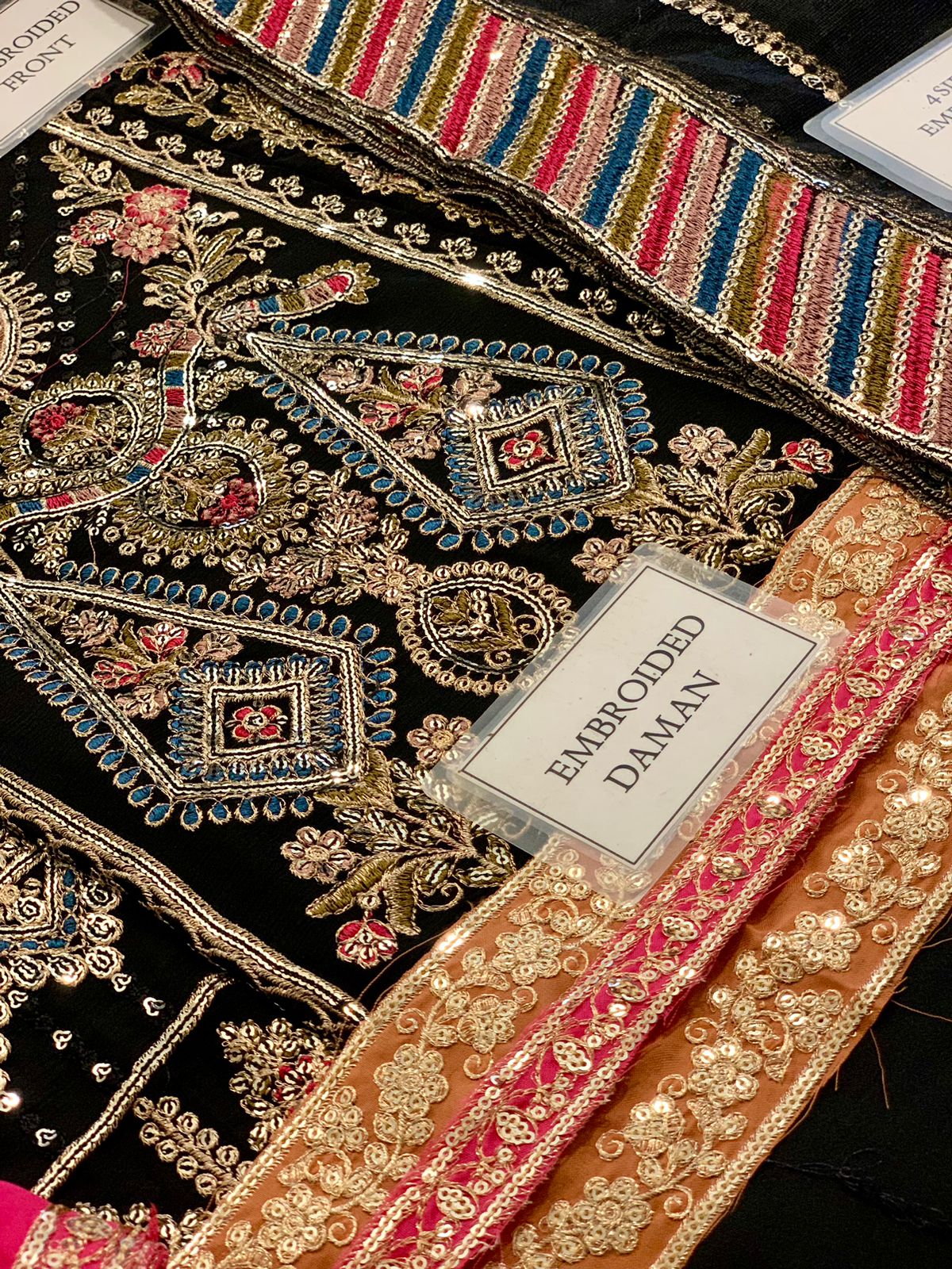 Chiffon fully heavy embroidered spangle work back with heavy embroidered spangle work back daman lace