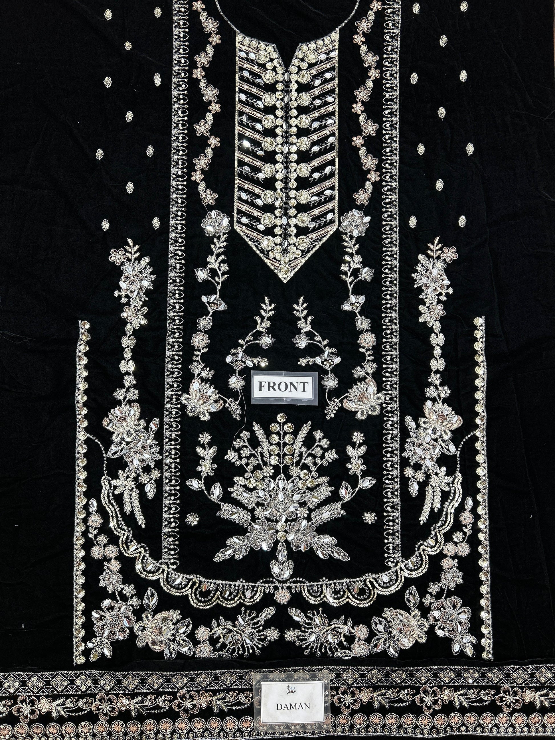 Heavy embroided front on velvet with handwork(embroided daman on velvet)