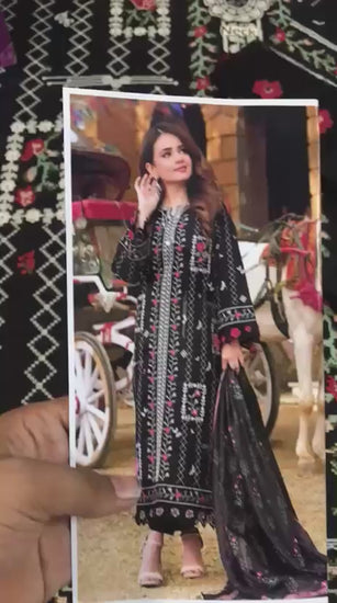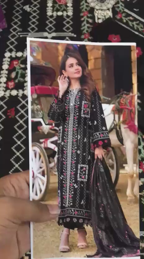 Aneela's Wz-55 Black Premium Pure Chikankari Lawn With Silk Duppata 26