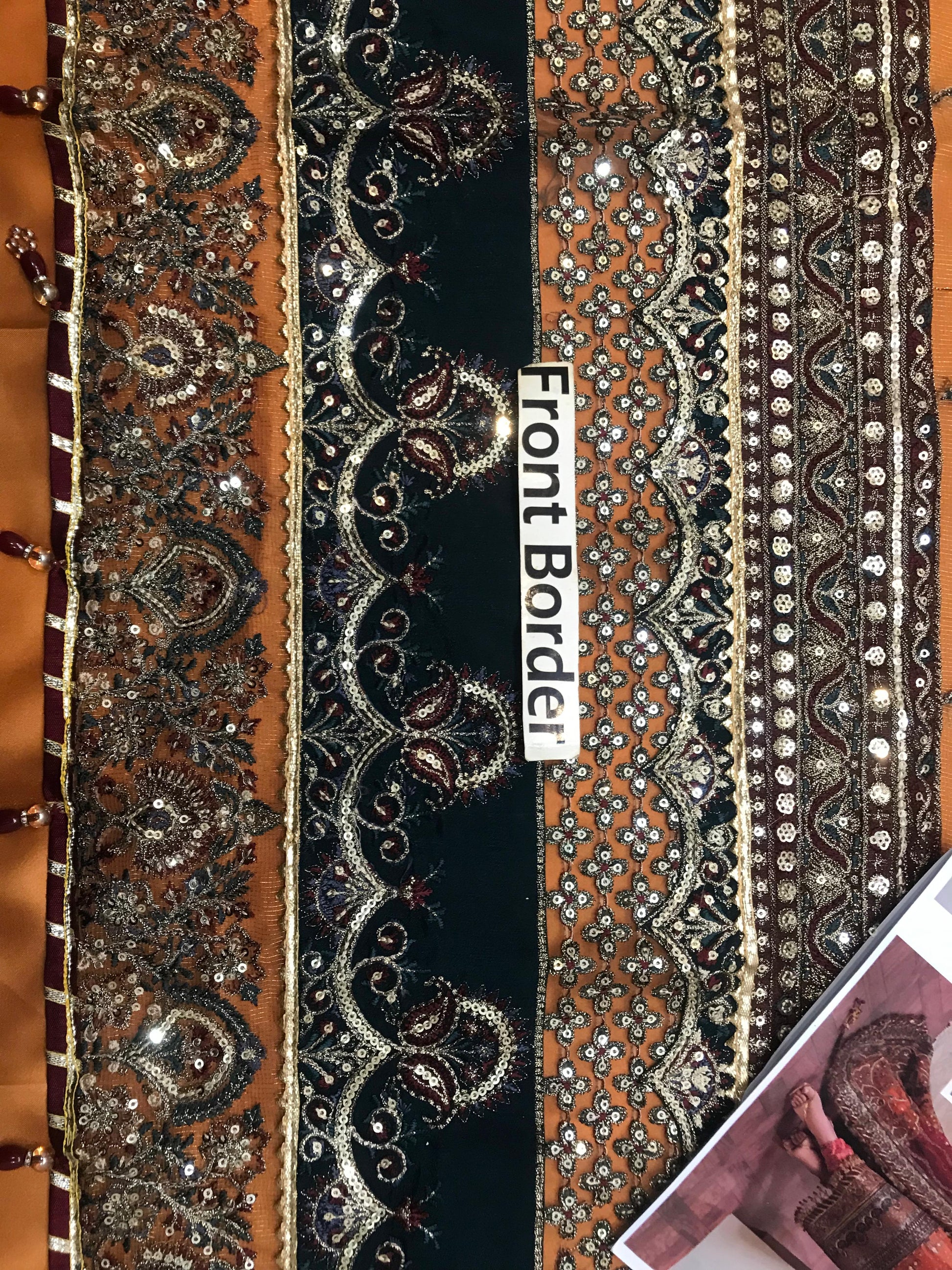 ▪️Heavy Embroidery Front Border with Adda Work and Hanging Tuselss With Cut work on Fabric