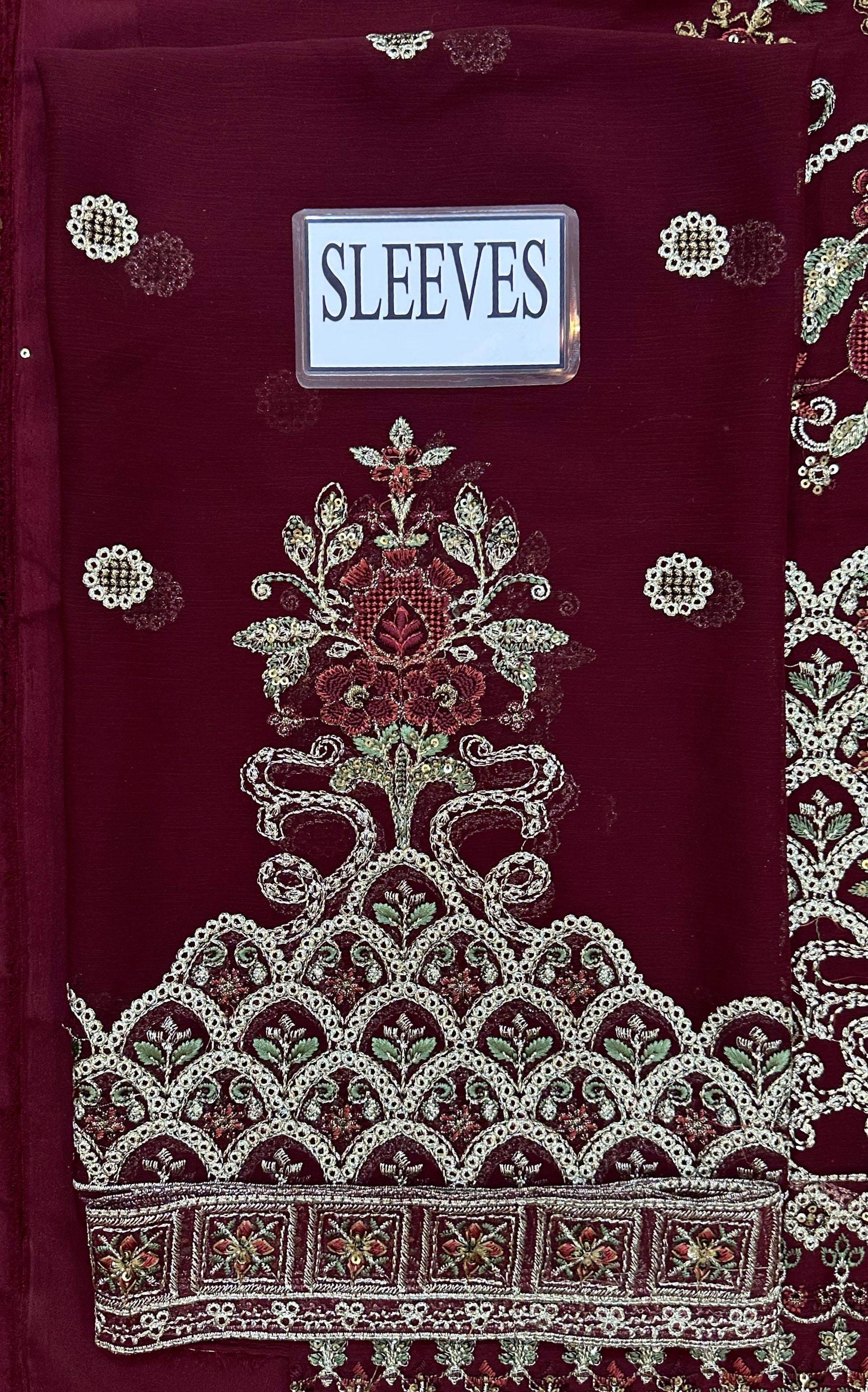 Semi pure chiffon embroidered front 1 yard with Hand Embellished.
