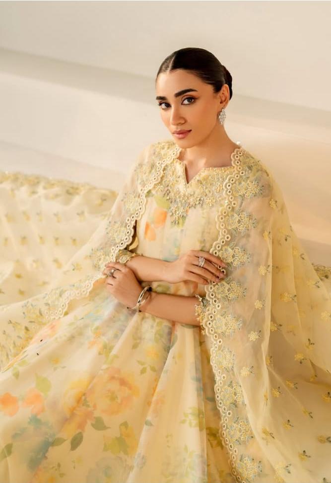 DIGITAL PRINTED CHIFFON SELEEVES ALONG WITH HEAVY EMBROIDERED CUFF PATCH