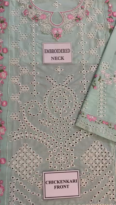 CHICKENKARI FULLY HEAVY EMBROIDERED FRONT ALONG WITH EMB/CHICKENKARI DAMAN PATCHES GIVEN SEPERATELY(3 PCS)