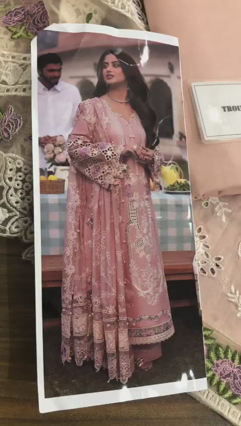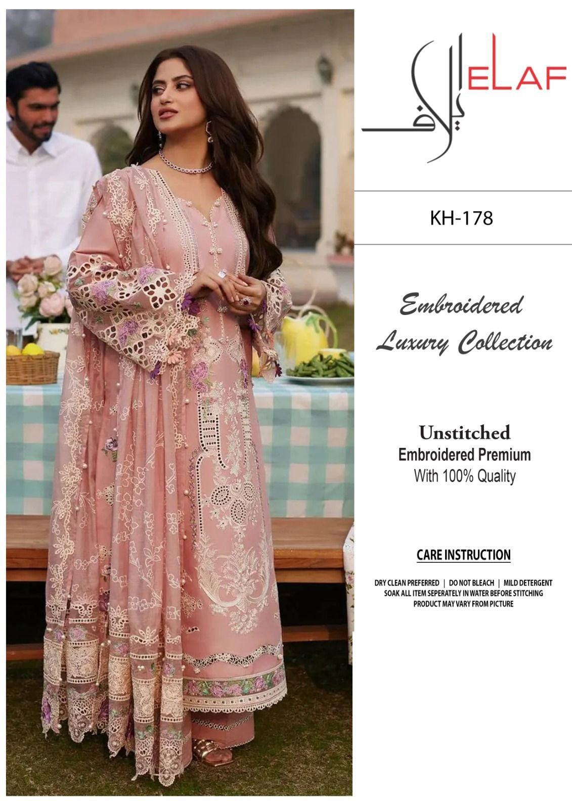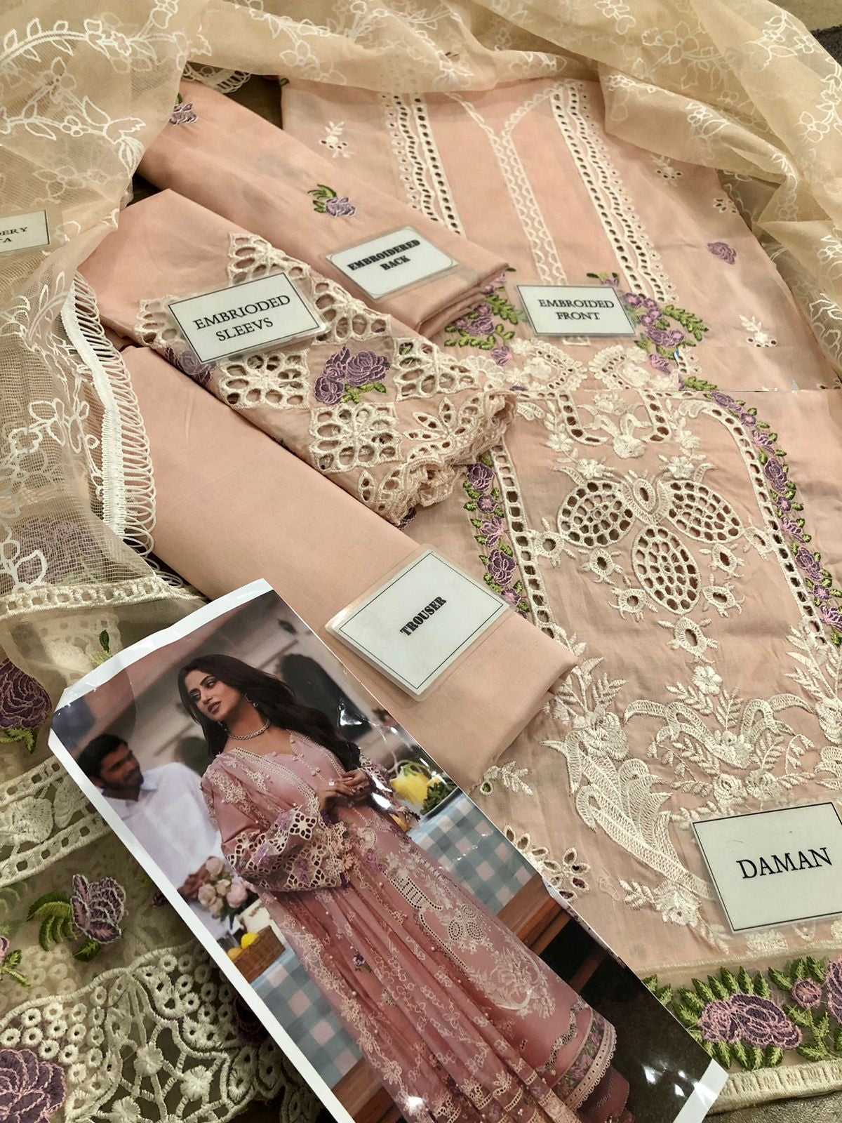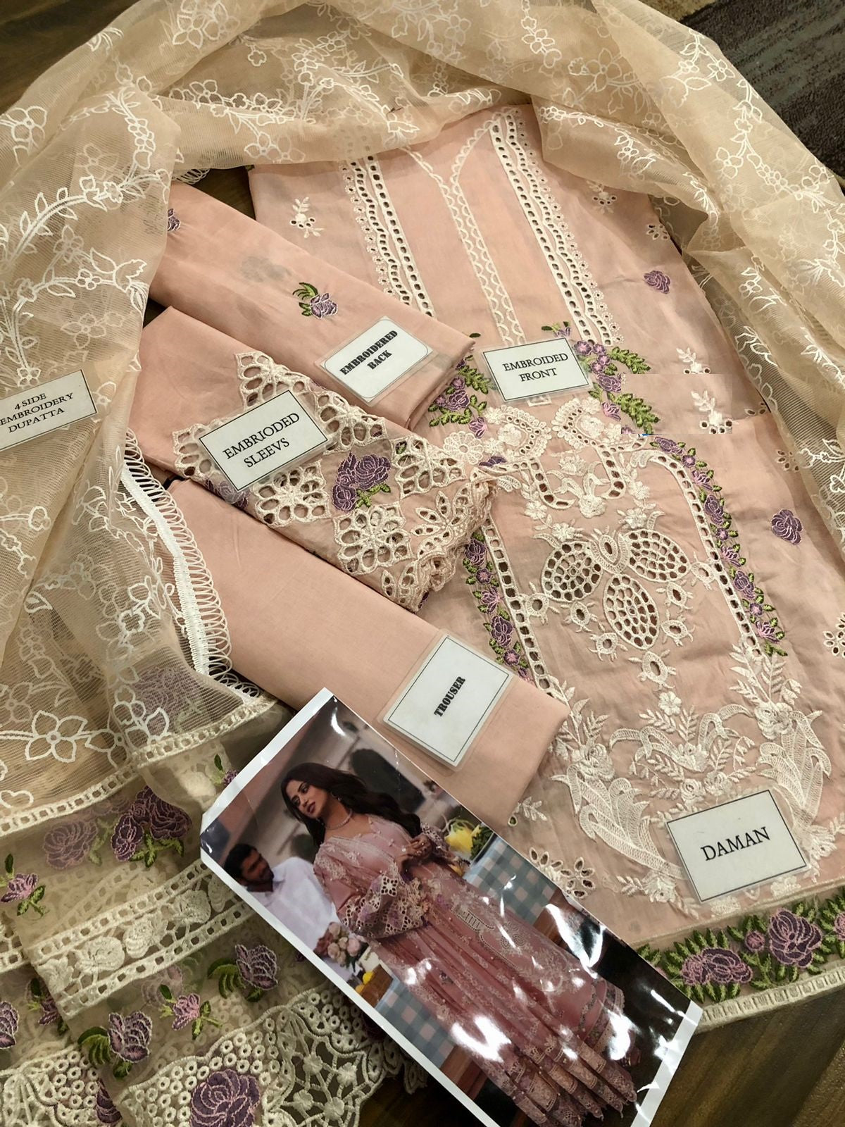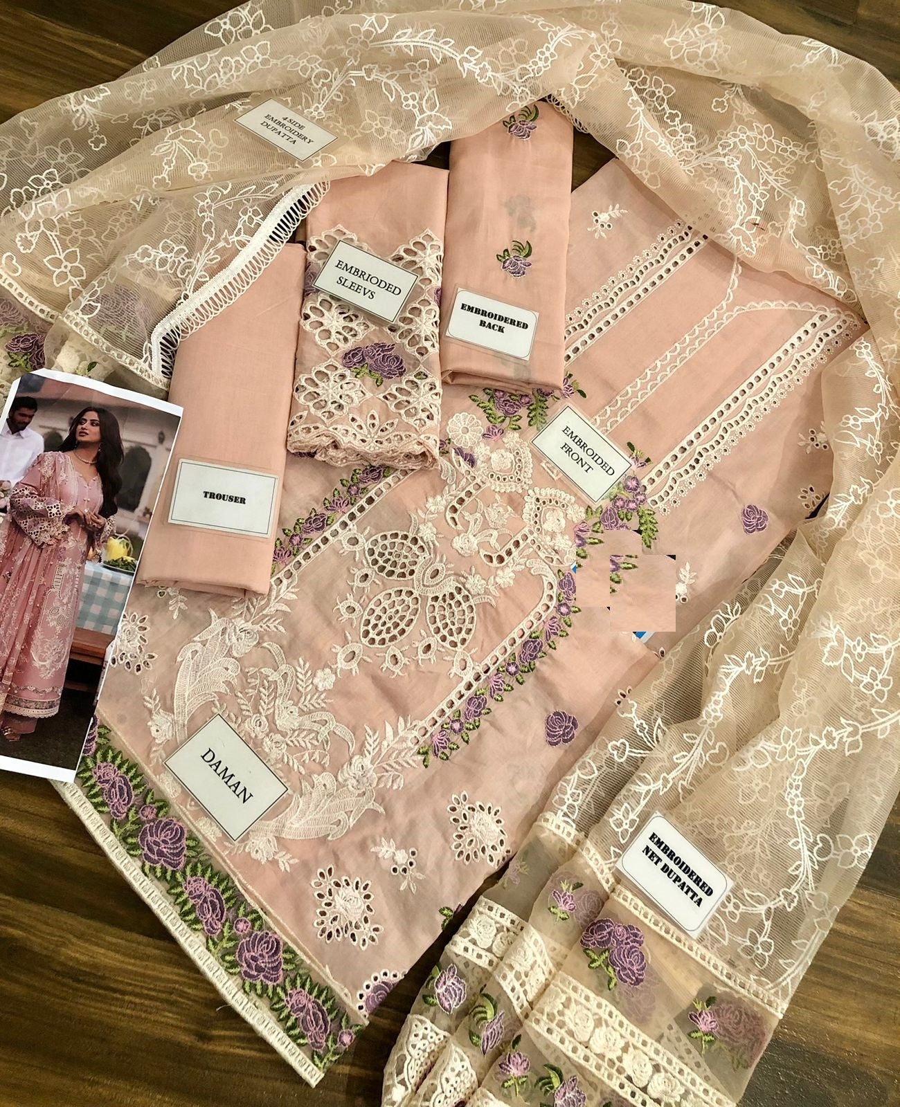 Elaf Peach New Wz-025 Luxury Lawn Cotton Emb With Khaadi Net Duppata 25