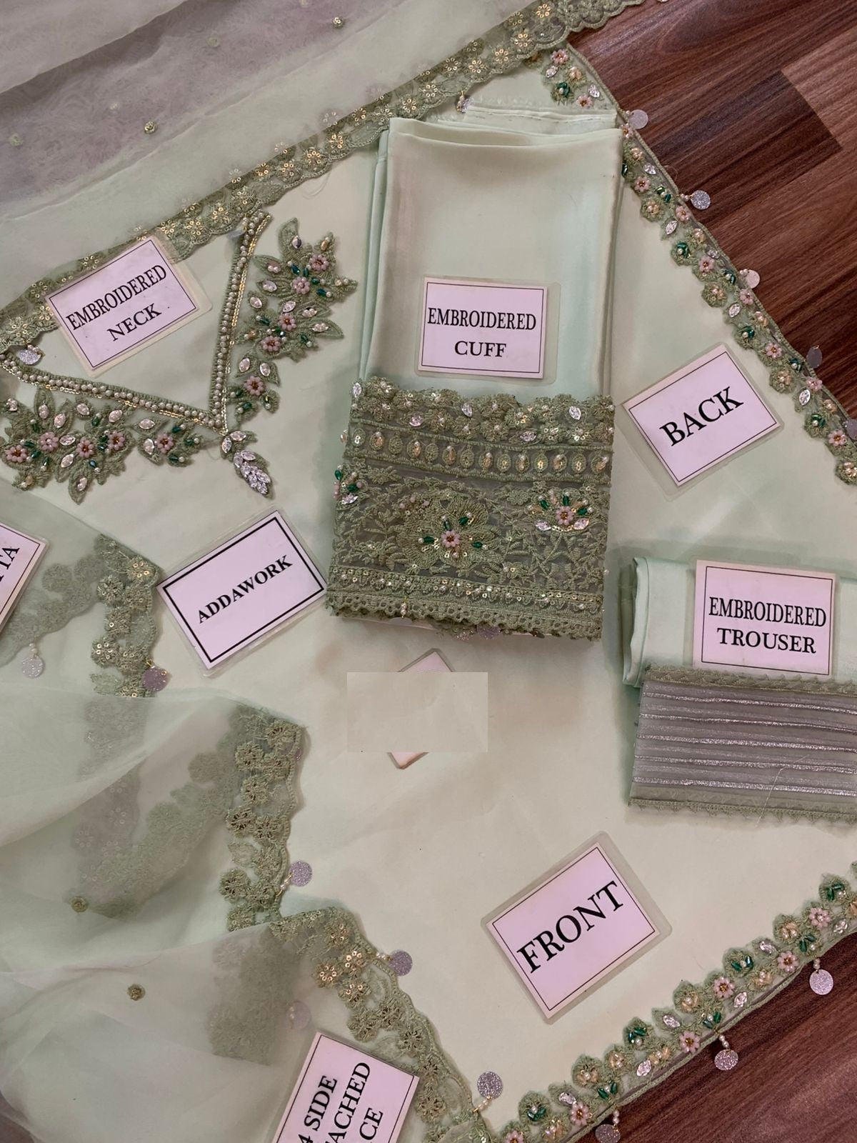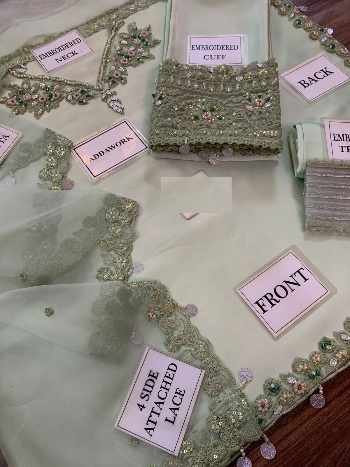 FRONT AND back SHAHMOZE SILK NECK EKBROIDERD BUNCH WITH ADDA WORK WITH HEAVY ADD WORK BORDER CHAK PATTI
