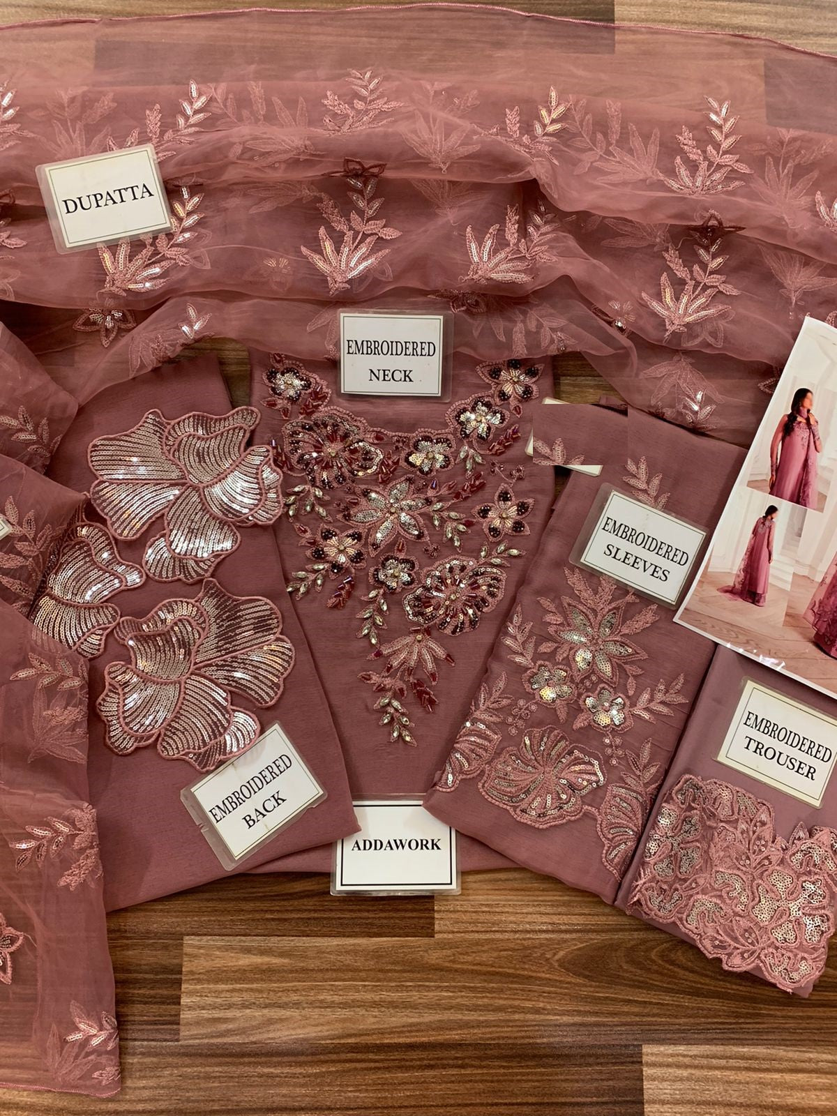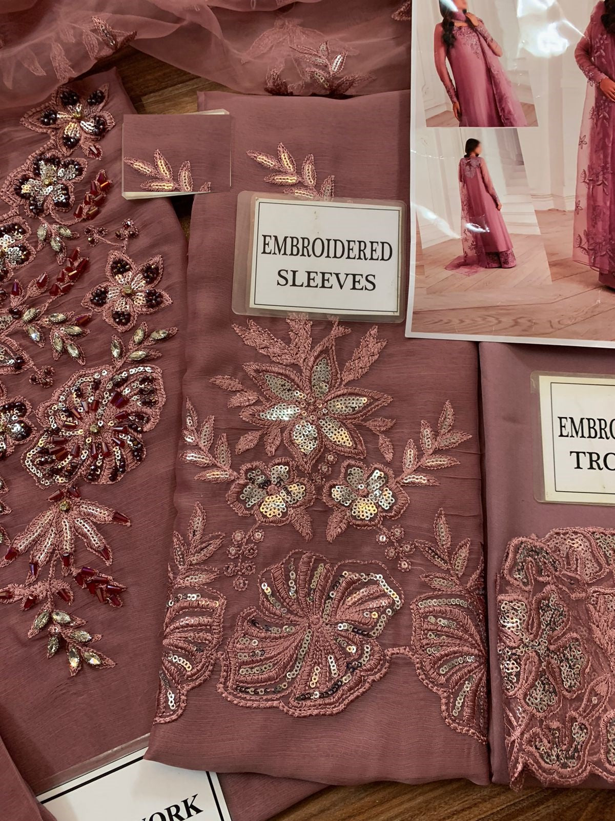 CATIONIC CHIFFON SELEEVES WITH HEAVY ALTERNET EMBROIDERED CUFF ON FABRIC