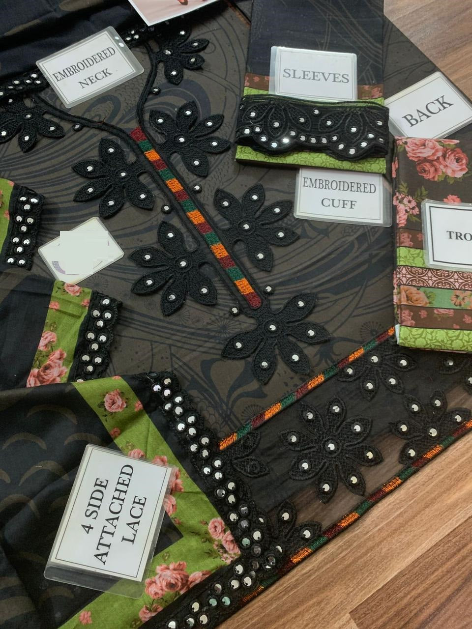 Jazmin 9mm Sequence Black Premium Pure Lawn With Voiel Emb Duppata 26