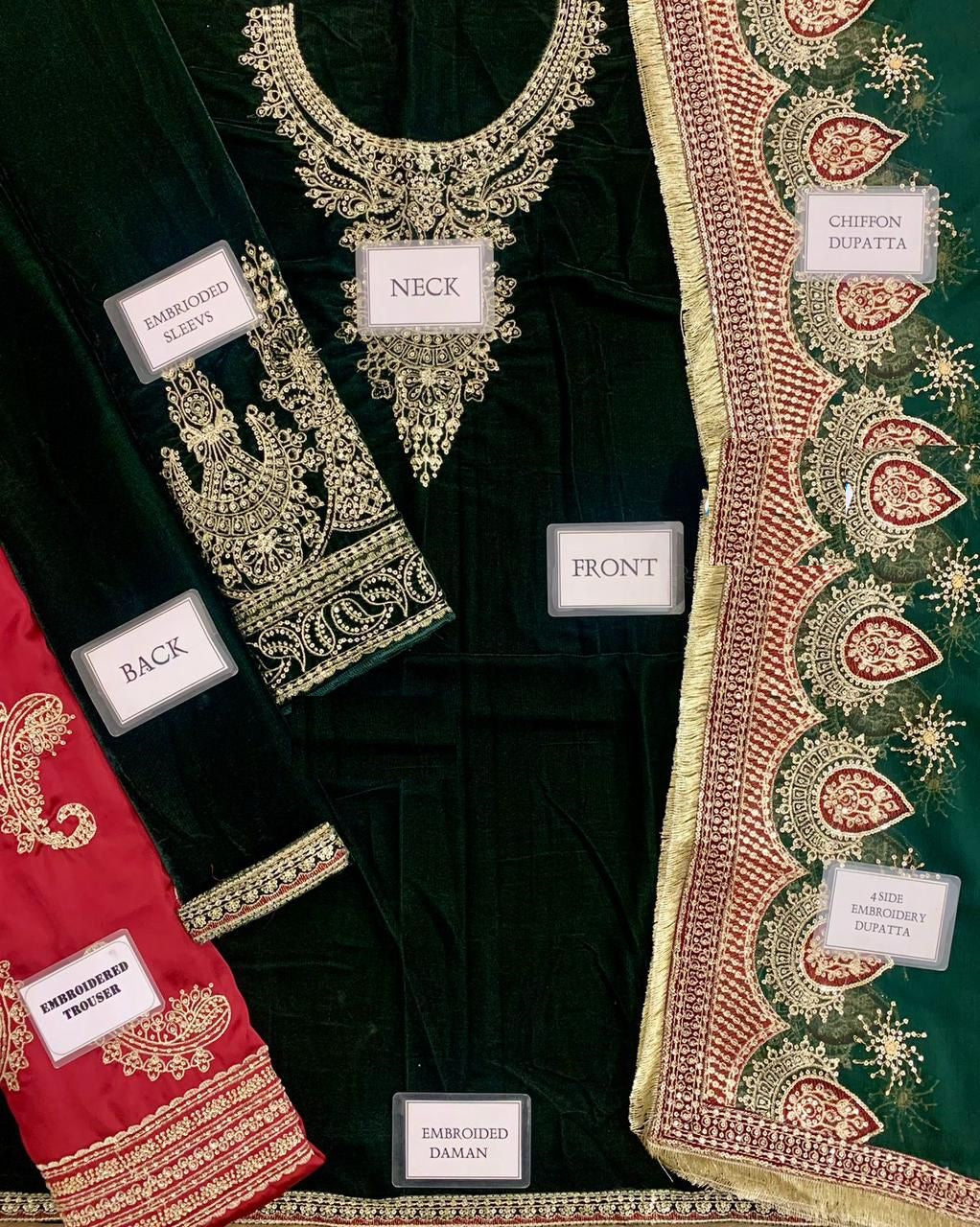velvet plain back with velvet embroidered spengle work back daman lace & chak lace