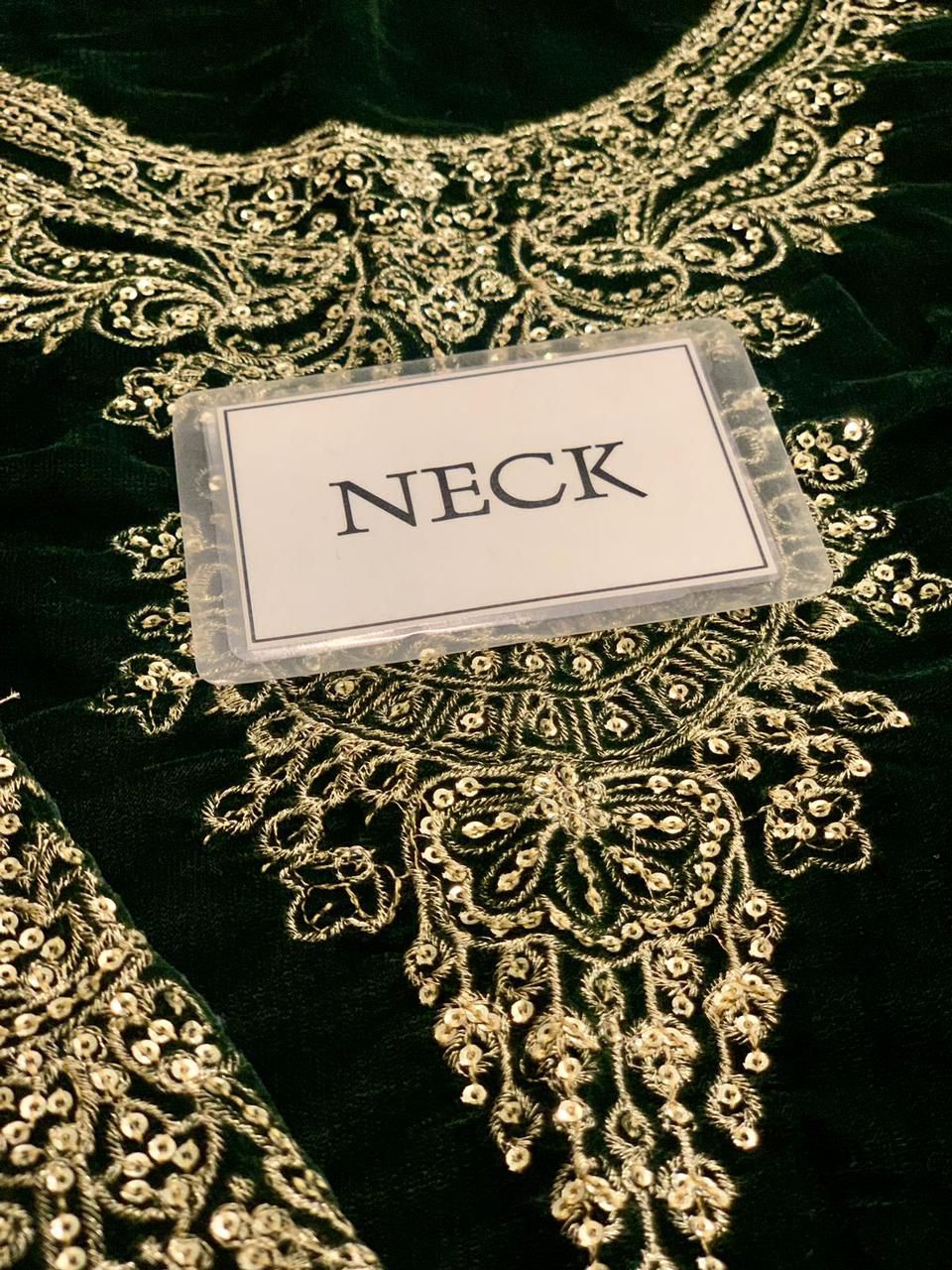 Velvet alternet embroidered spengle work neckline on front with velvet embroidered spengle work daman lace & chak lace