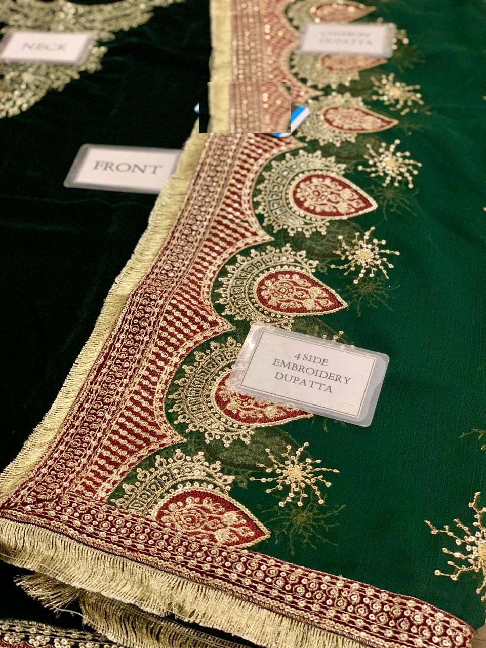 chiffon fully heavy embroidered spengle dupta with 4 side embroidered spengle work lace attach with 4 side fancy zari lace attach