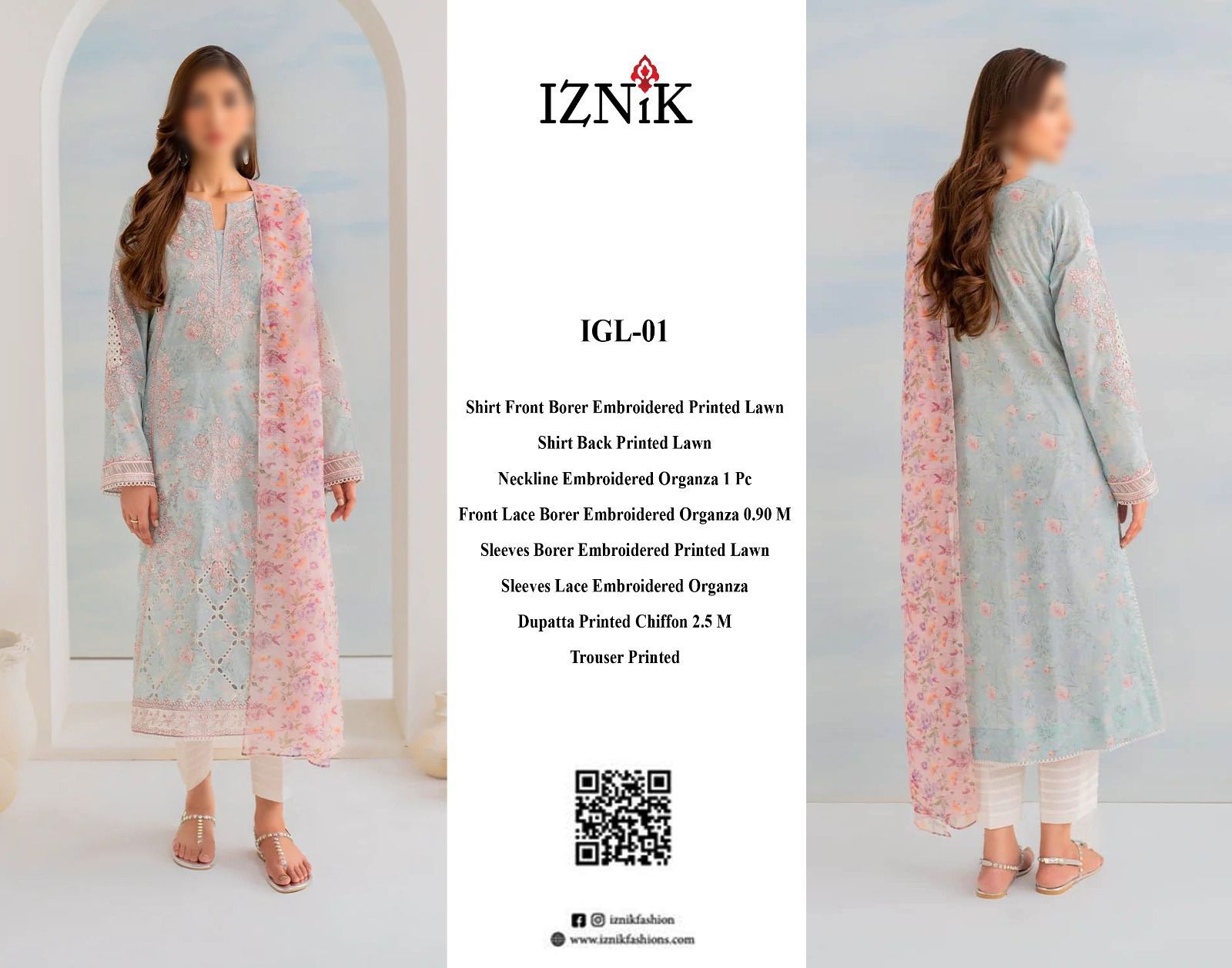 Iznik Wz-090 Premium Pure Lawn With Pure Chiffon Duppata 2024