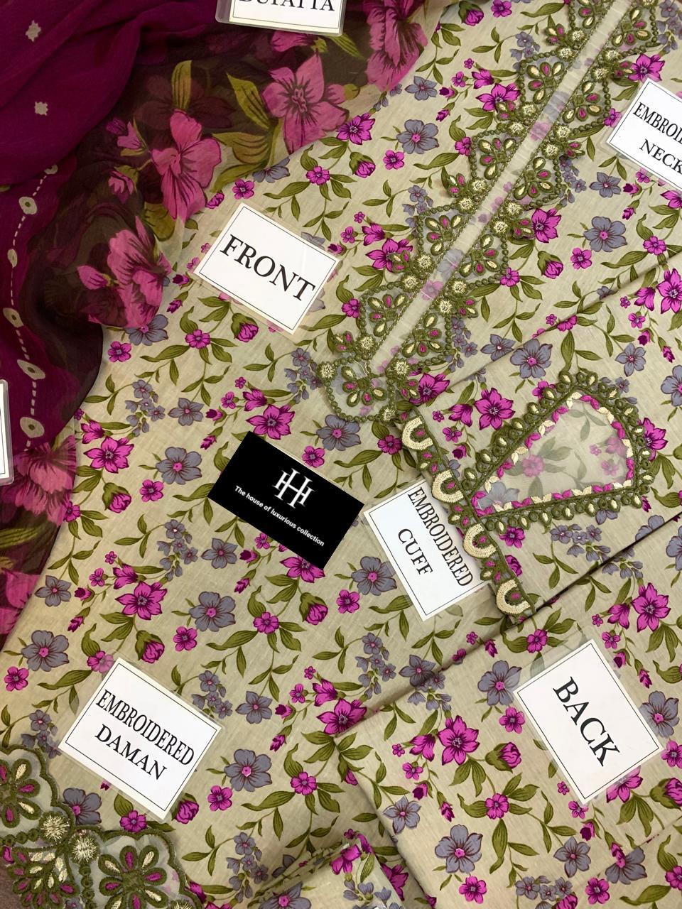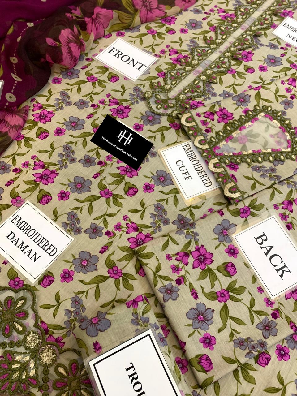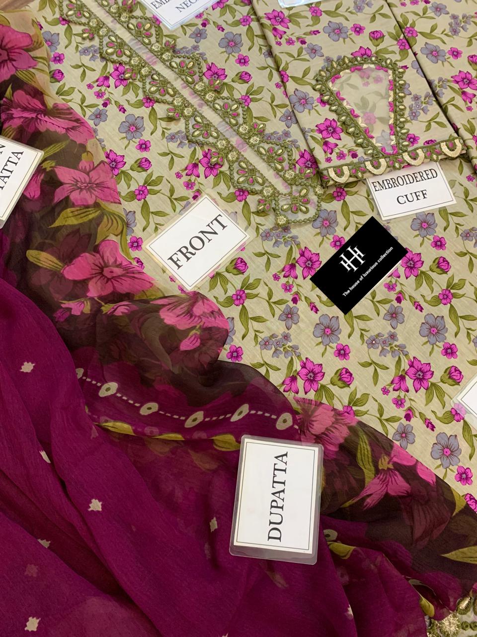 PRINTED LAWN FRONT WITH EMBROIDERED NECK & DAMAN PATCH