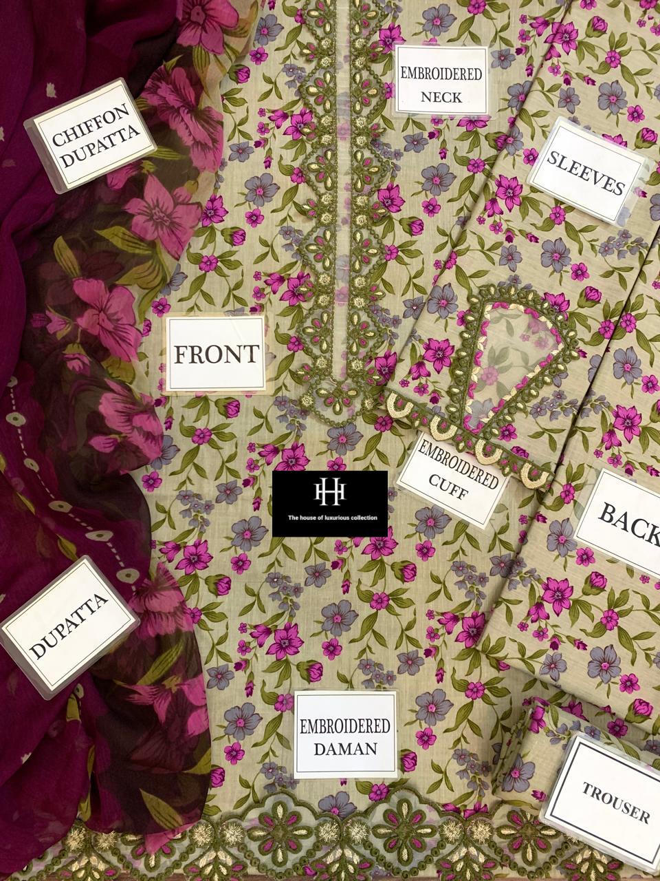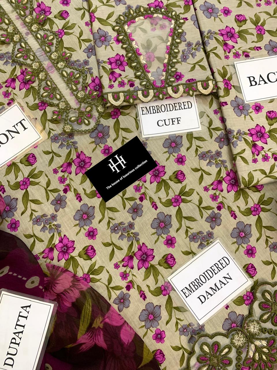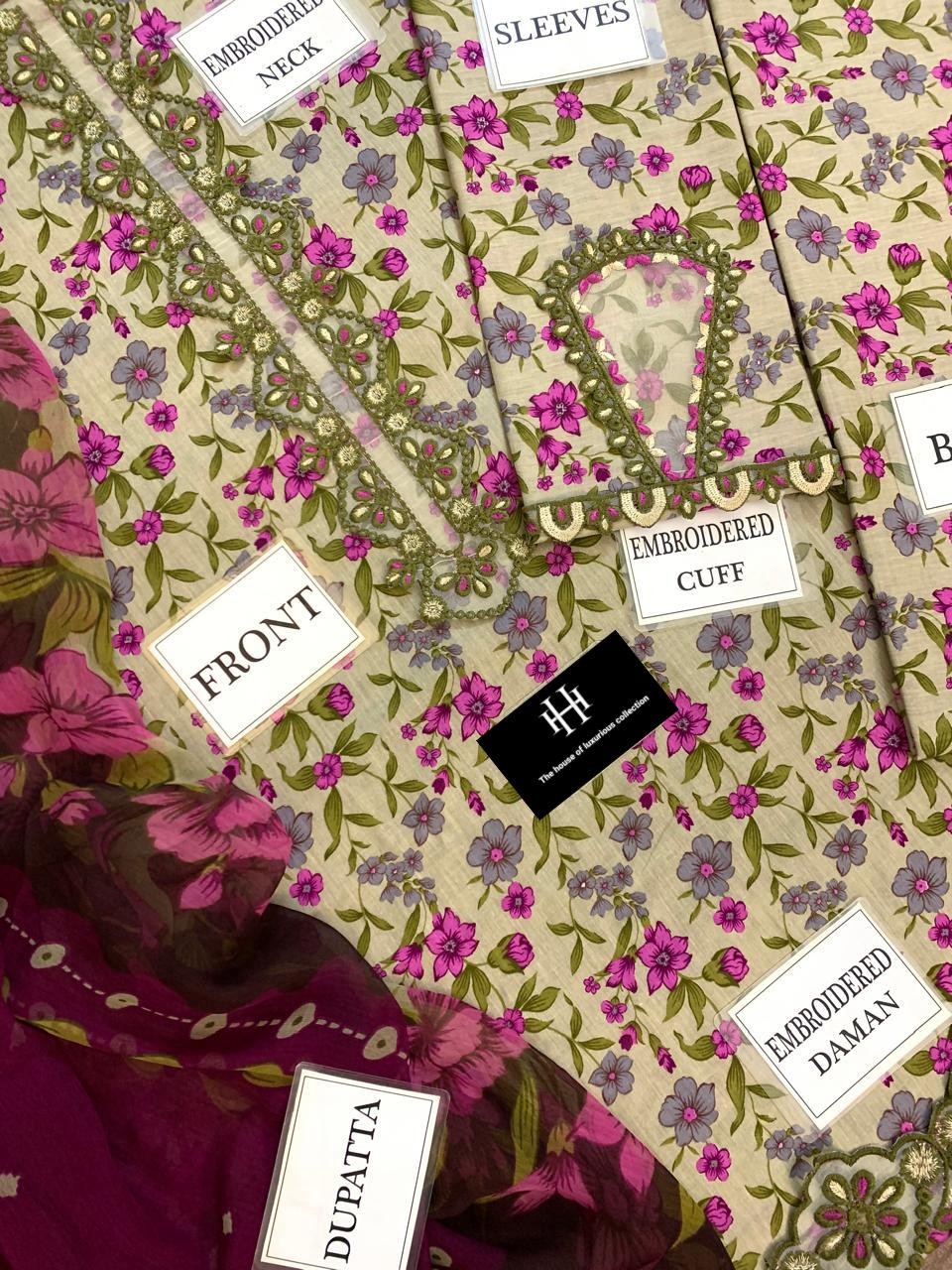 PRINTED LAWN FRONT WITH EMBROIDERED NECK & DAMAN PATCH