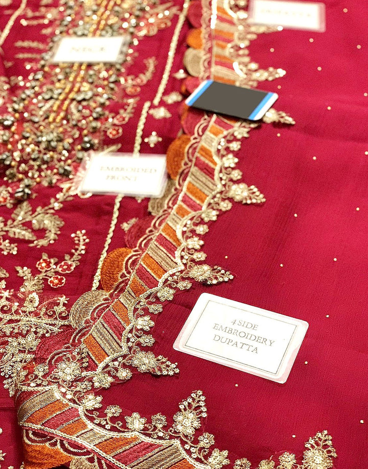 - 4 Side Border Heavy Embroidered Chiffon Dupatta