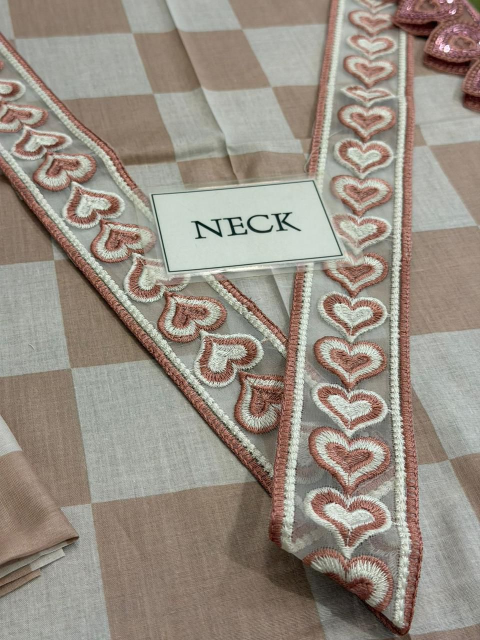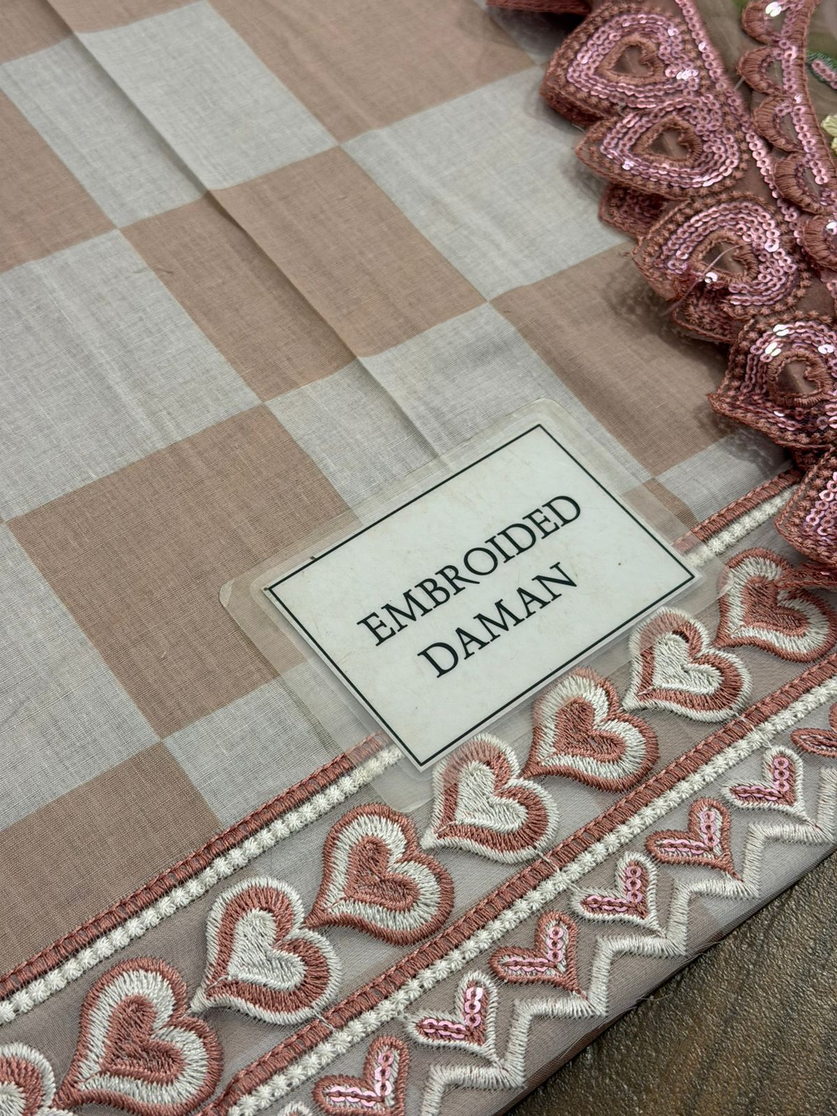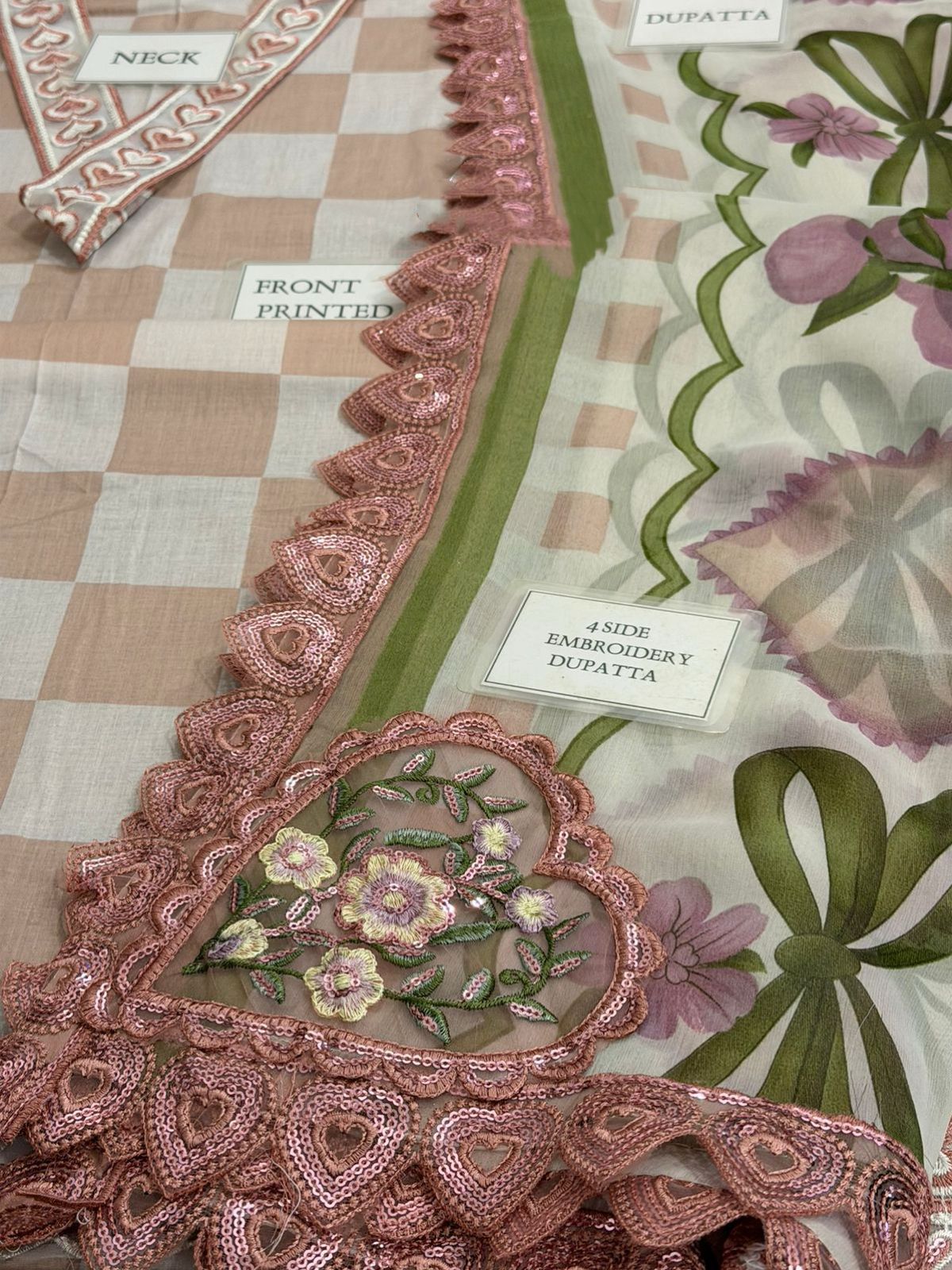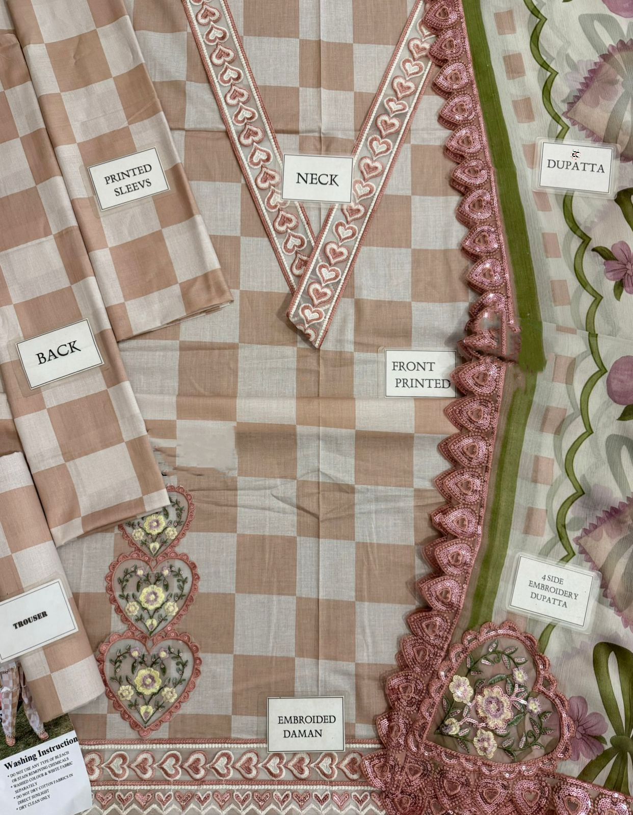 printed lawn front with heavy embroidered spengle work neckline lace with embroidered spengle work daman bunches