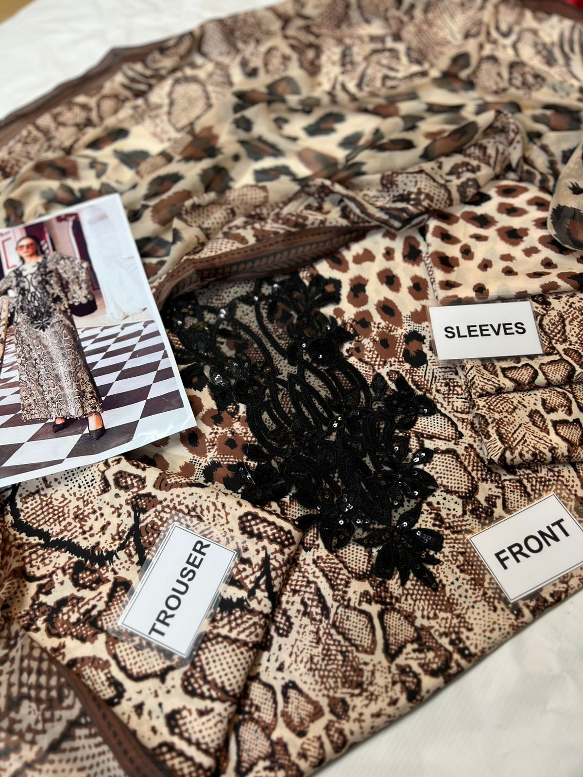 🌟 Maria B Latest Digital Printed 3-Piece Dress with elegant Embroidered neck Patch 🌟