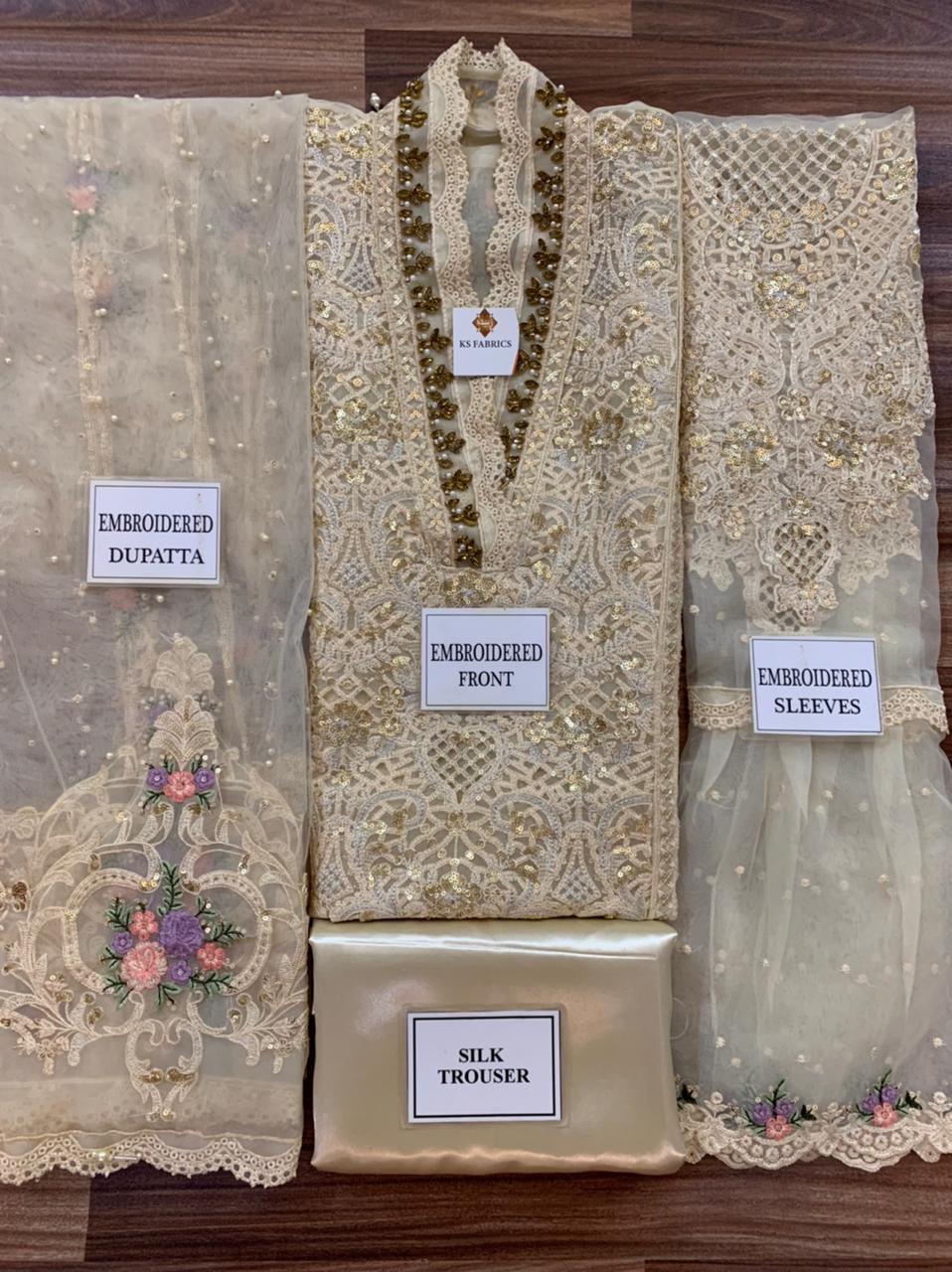 HEAVY EMBROIDERED SEMI STITCHED ORGANZA FRONT EMBELLISHED WITH ADDA WORK