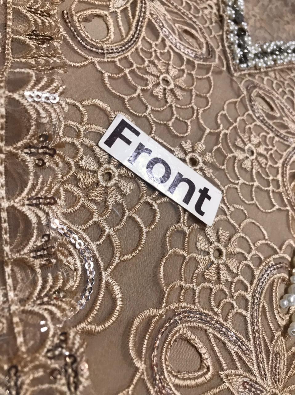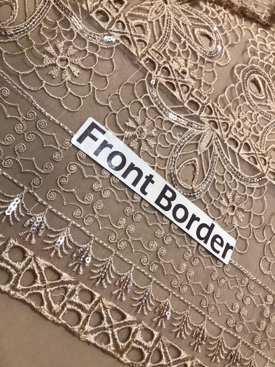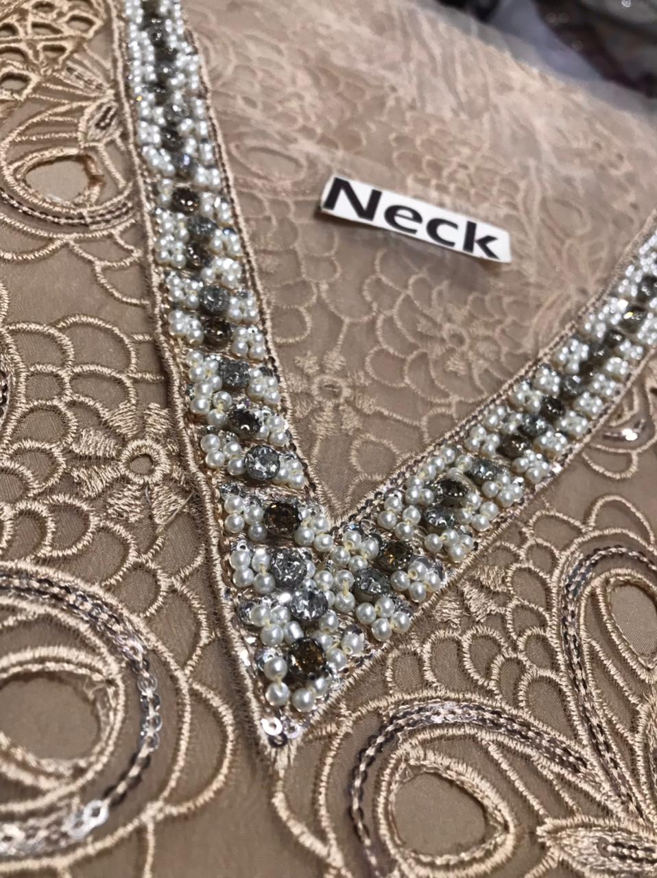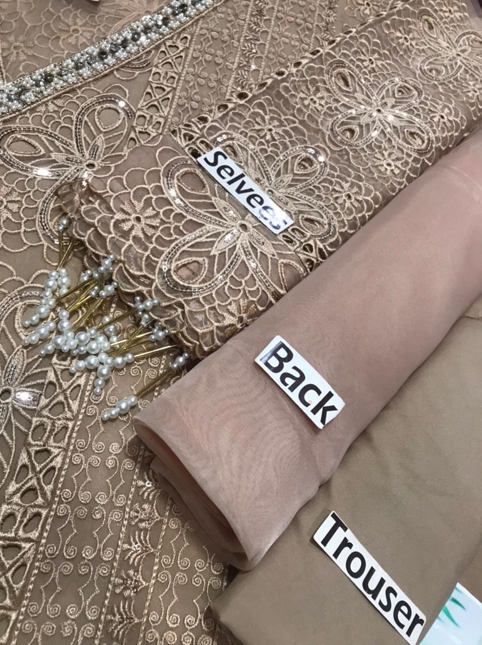 Organza Embroidered Front with Fully ada work Neck and Organza Daman given separately