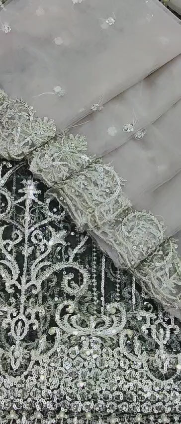 DUPATTA ON NET FULLY SEQUENCE EMBROIDERY WITH 4 SIDE EMBROIDERED BORDER