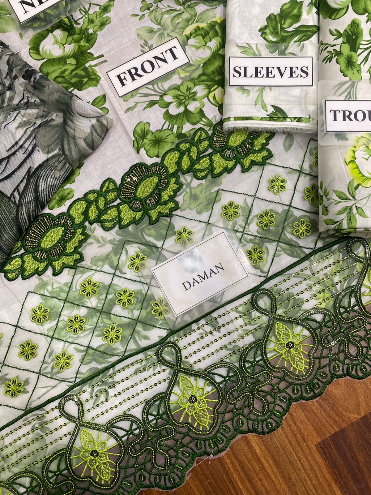 Asifa Nabeel Azadi Sale Green Wz-201 Premium Pure Lawn WIth Digital Printed Silk Duppata 2024